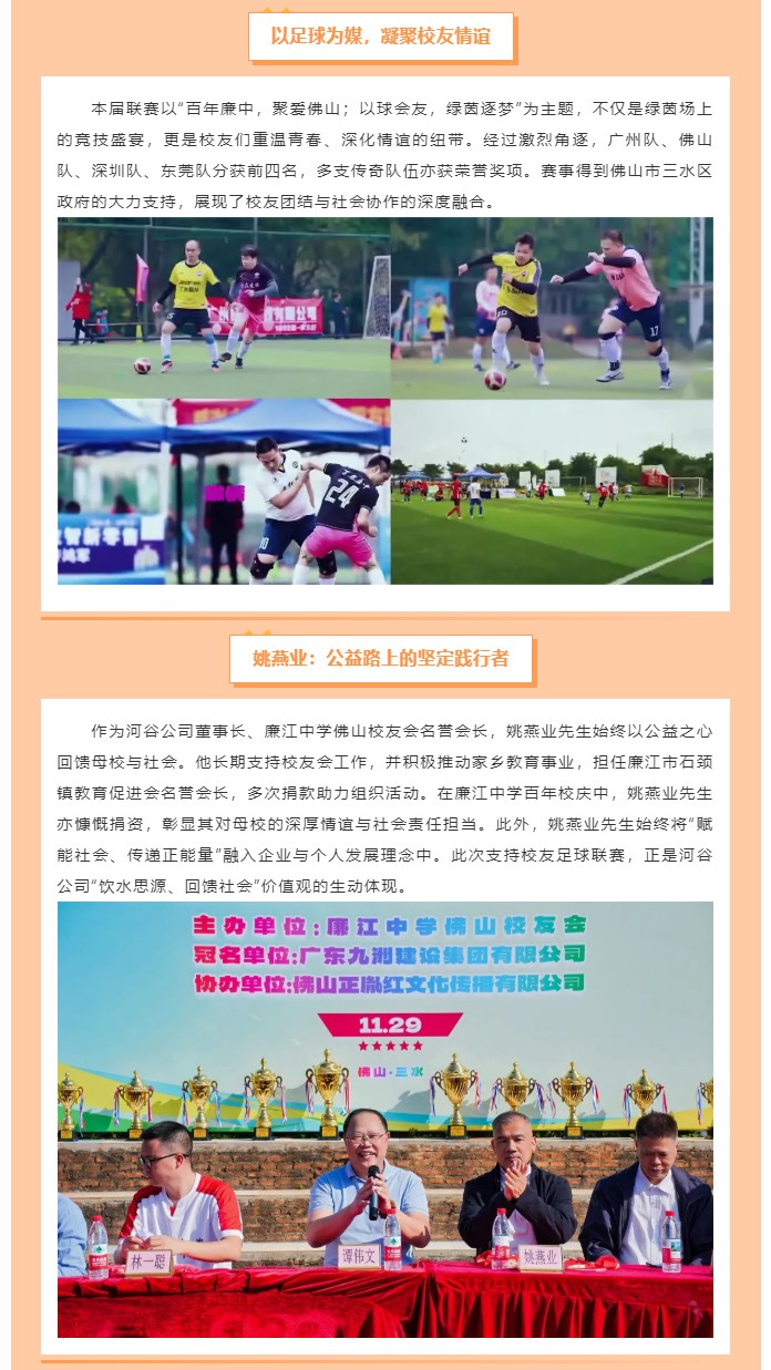 首頁>新聞資訊>企業新聞>河谷公司董事長姚燕業傾情支持第四屆“九洲建設杯”廉江中學粵港澳大灣區校友足球聯賽,共筑校友情誼與公益精神