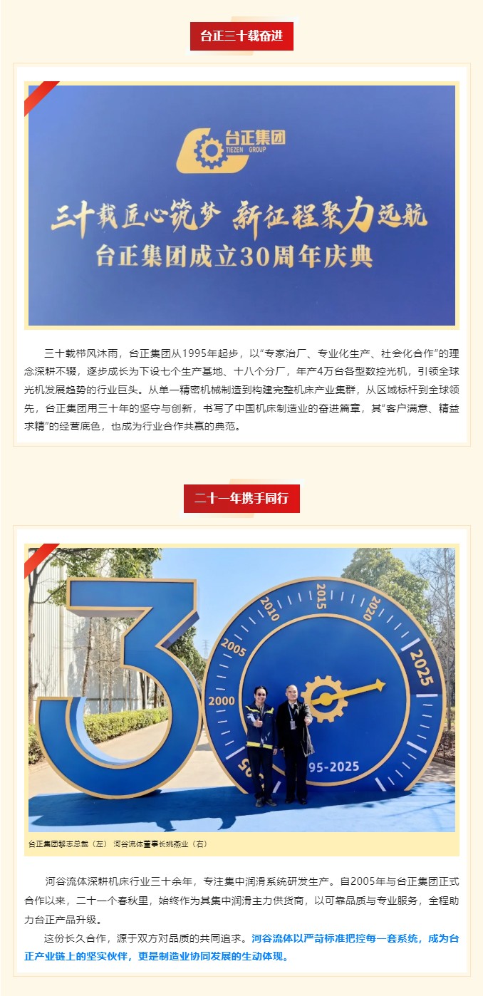 首頁>新聞資訊>企業新聞>二十一載同心伴,三十華章共啟航——河谷流體祝賀臺正集團成立30周年